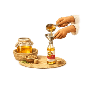 After filtration and quality checks, the oil is packed under hygienic conditions.